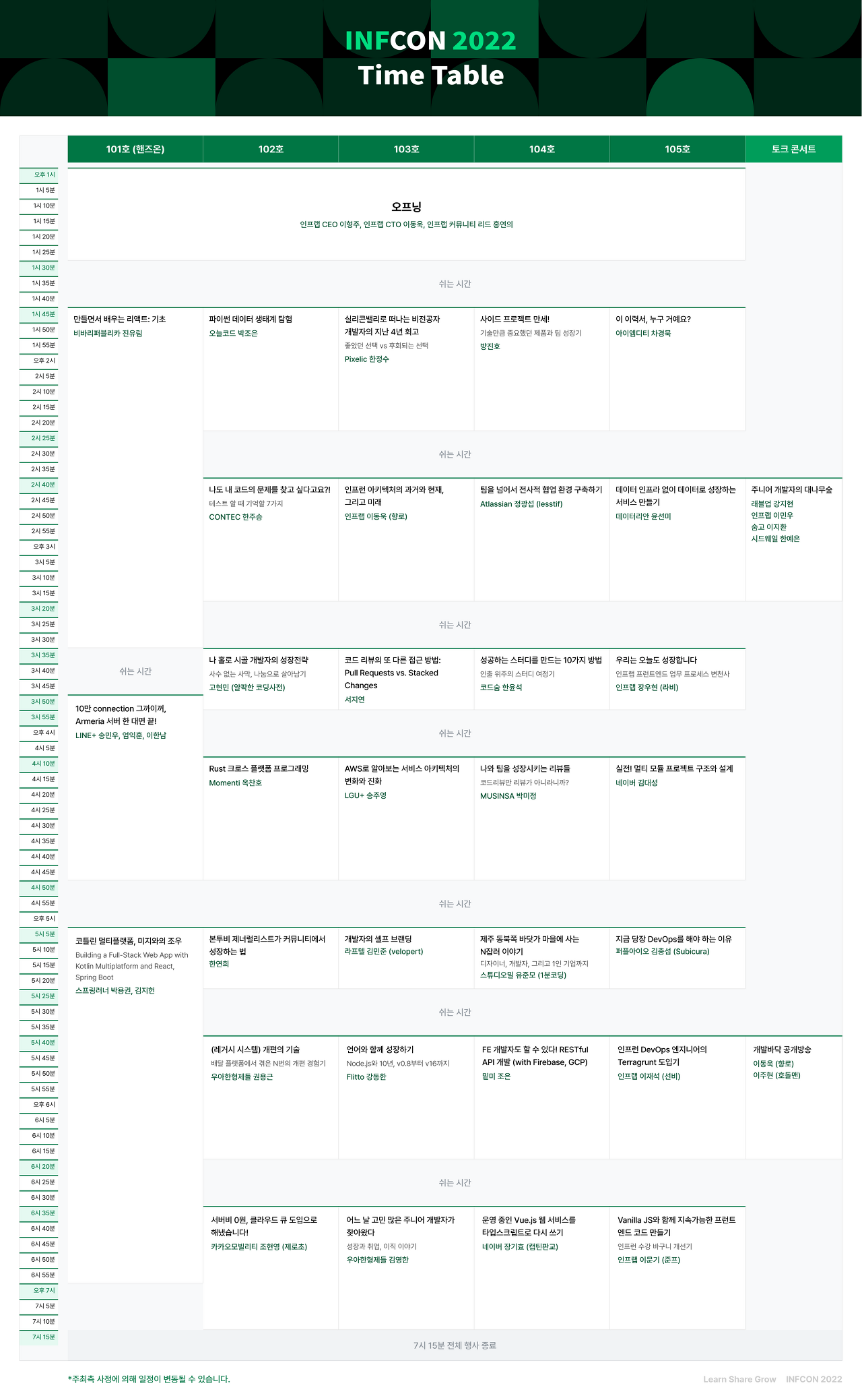 세션으로 넘어가서, 인프콘에는 아래와 같은 세션들을 진행했고