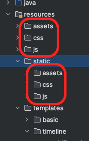 1) 내가 다운받은 부트스트랩 템플릿에 관련된 파일들을 static 안으로 넣어둠. (혹시 몰라 복사해서 넣어주었음.)
