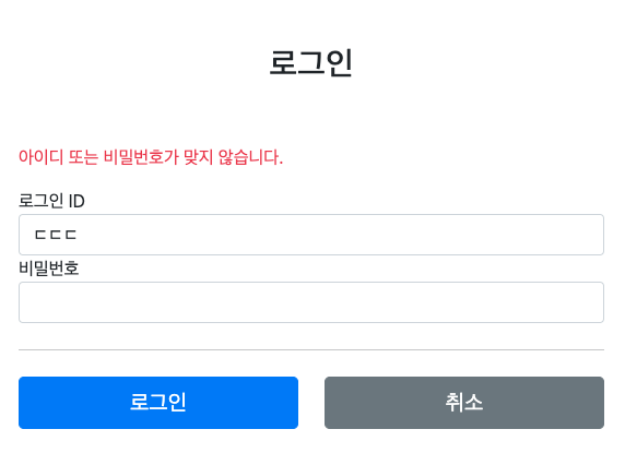 - 로그인이 실패하면 로그인 페이지에서 이동하지 않고 에러페이지만 띄움