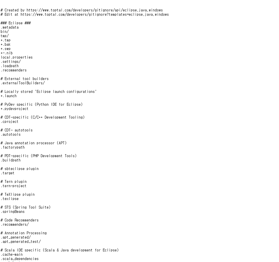 * gitignore 을 손쉽게 생성해주는 사이트 *