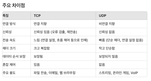 - 스트리밍, 온라인 게임, VoIP 등 실시간 애플리케이션에서 주로 사용됩니다.