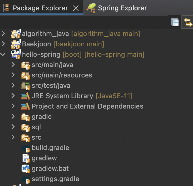 스프링부터 & 그레이들 프로젝트가 아래 화면 처럼 제대로 import 되지 않음.