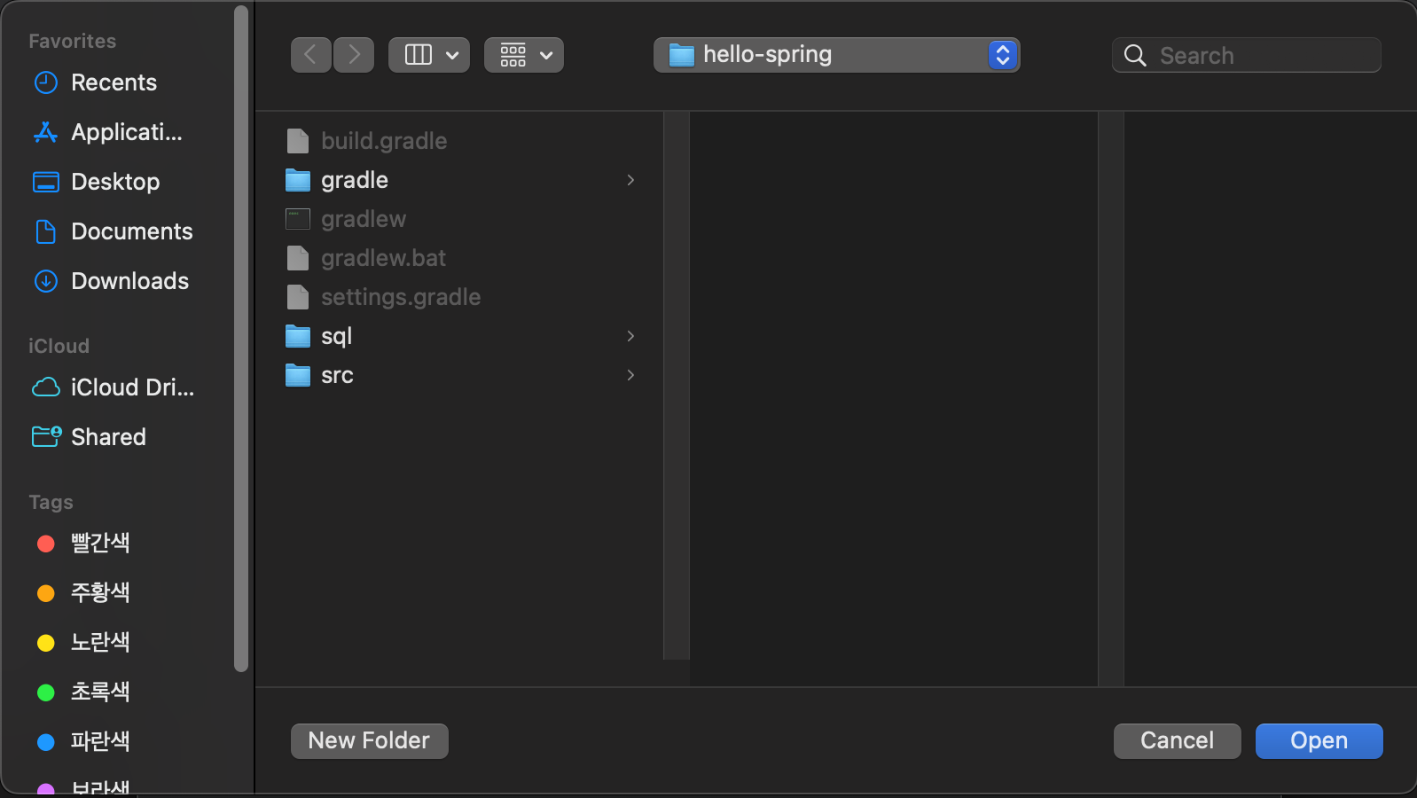 보통 gradle, sql, src 폴더들이 보이는 경로까지 들어가면 된다.