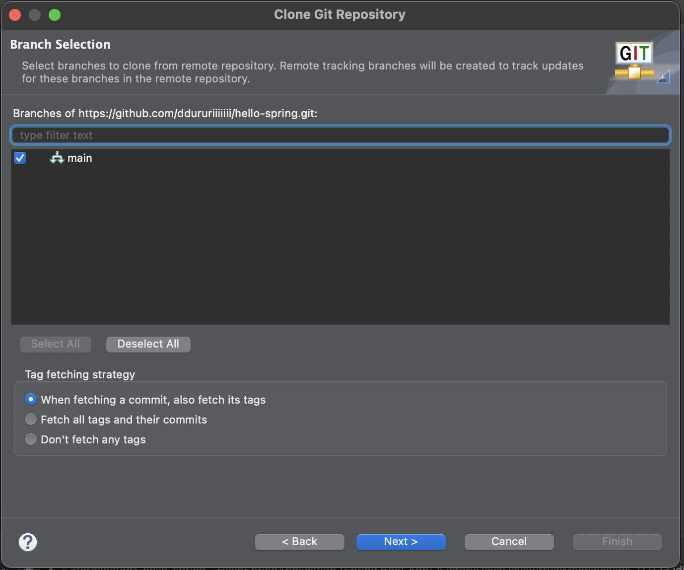 7. 해당 프로젝트가 있는 경로를 설정해주고 next, next, finish~!