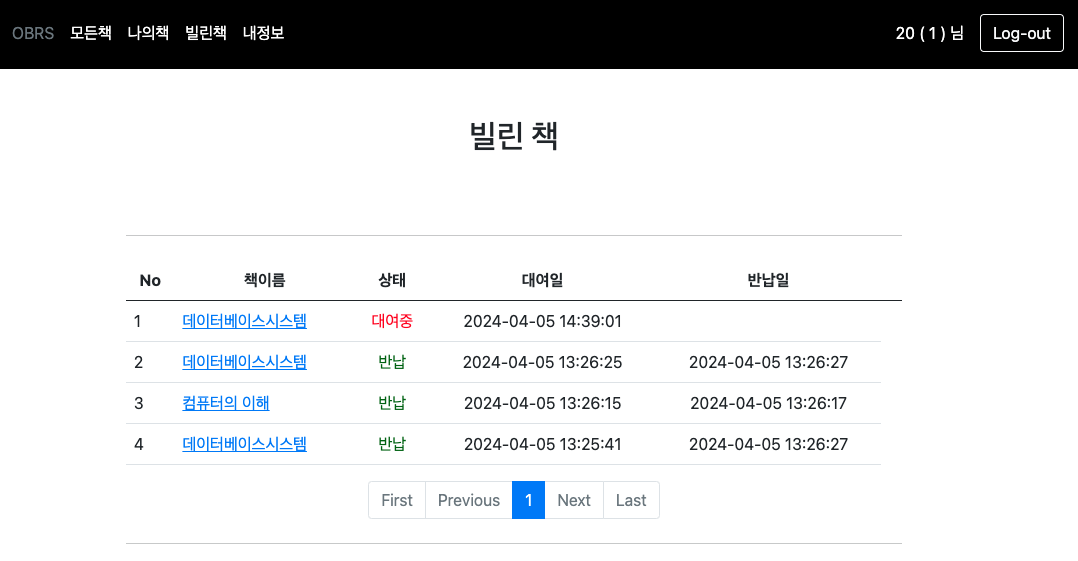 - 내가 빌린 혹은 빌렸던 책에 대한 목록을 조회할 수 있다.