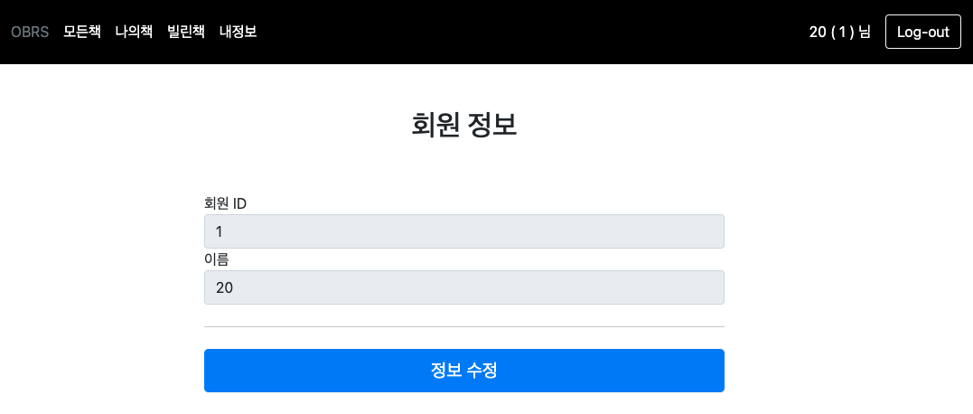 - 가입한 회원은 자신이 등록한 책과 빌린 책에 대한 내용을 확인할 수 있으며, 자신의 회원 정보를 수정할 수 있다.