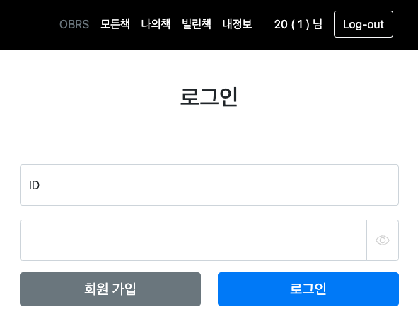 - 상단에 시스템의 모든 메뉴를 보여지게끔 했지만 로그인이 필요한 서비스 ('모든책'의 등록/대여/반납, '나의책', '빌린책' '내정보')는 로그인을 요구한다.
